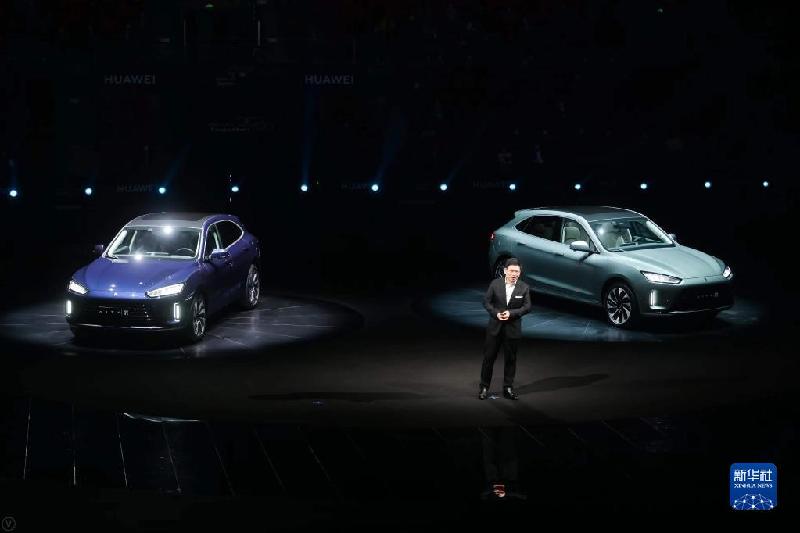 12月23日,华为常务董事、消费者业务CEO余承东在深圳举行的发布会上介绍AITO问界M5智能汽车。新华社发(华为供图)