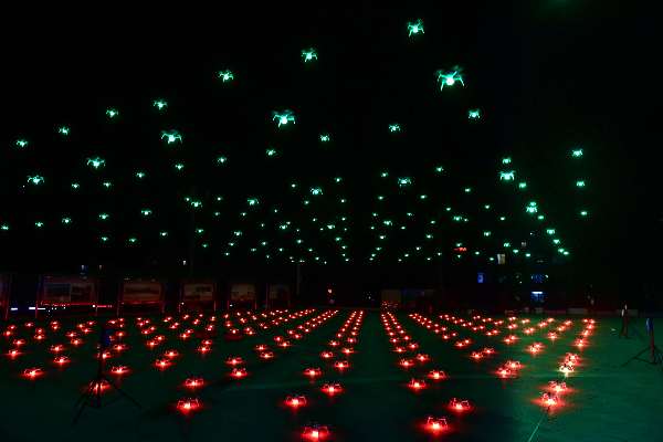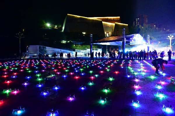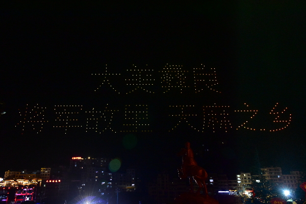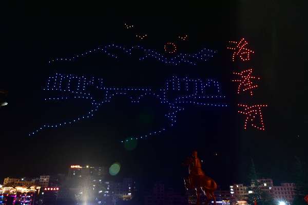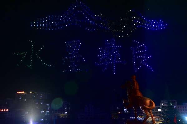 2021年12月31日晚,“旭航·水墨彝良”千架无人机秀在昭通市彝良县罗炳辉将军纪念馆广场举行?!八土肌薄靶忠土脊泊次拿鞒恰薄按竺酪土冀世锾炻橹纭薄奥逶蠛印奔捌渫及浮Ъ芪奕嘶云鹇浣淮淼亩有?、变幻炫丽的灯光,在彝良县城夜空舞出了道道流光溢彩的文字或图案,给跨年夜喜迎新年的彝良市民带来了一份视觉和科技盛宴。