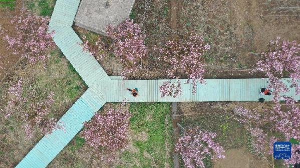 近日,河北省正定县樱花小镇景区种植的3800亩?;叫胧⒒ㄆ?,吸引游客前来游玩观赏。