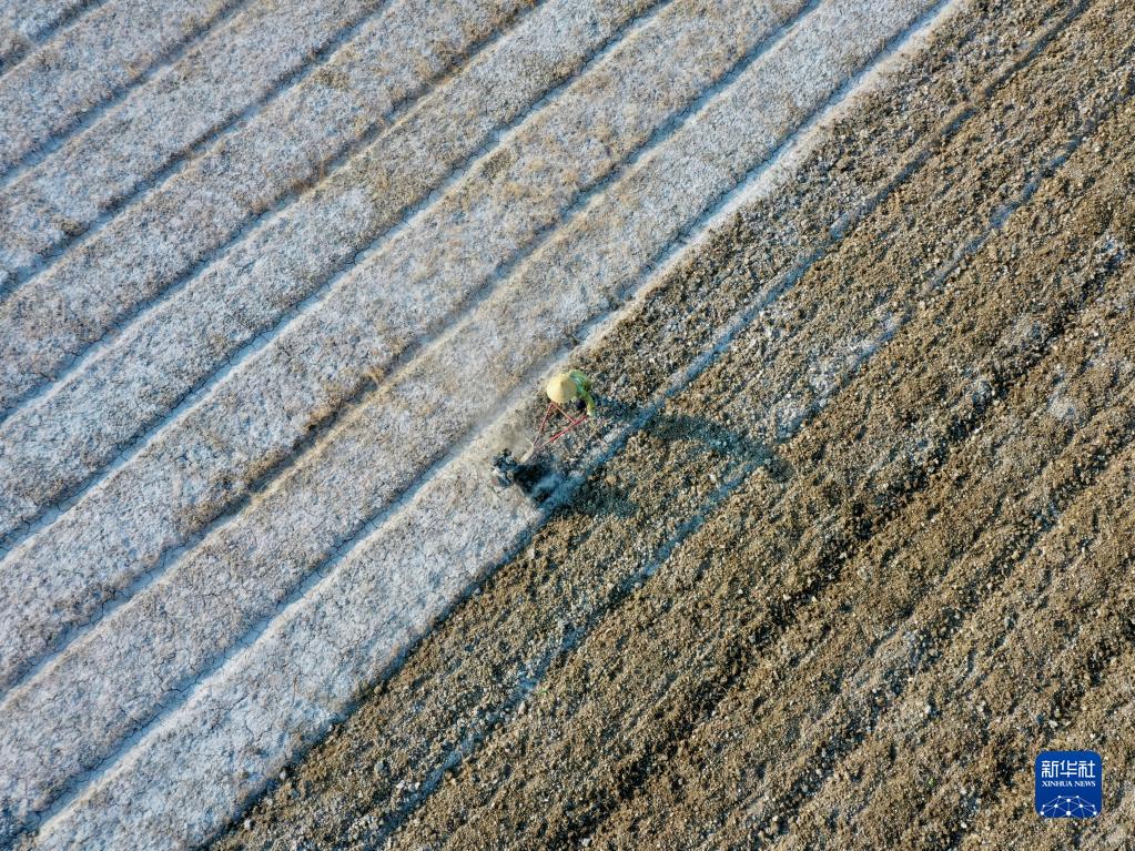 4月12日,福建省福州市闽侯县南通镇蔬菜花卉种植基地的菜农在整理耕地(无人机照片)。