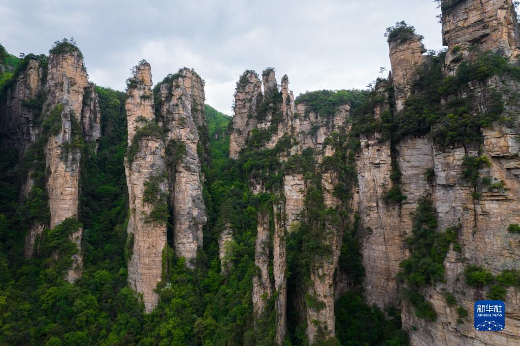 这是4月19日拍摄的武陵源风景名胜区袁家界神兵聚会景点(无人机照片)。