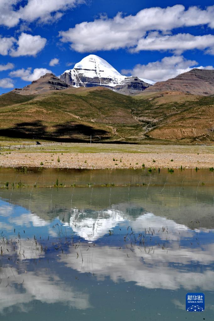 冈仁波齐峰倒映在水面(8月2日摄)。