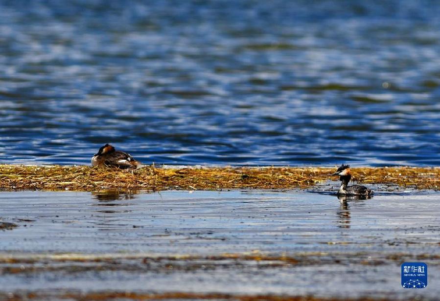 玛旁雍错湖面上的凤头 (8月2日摄)。