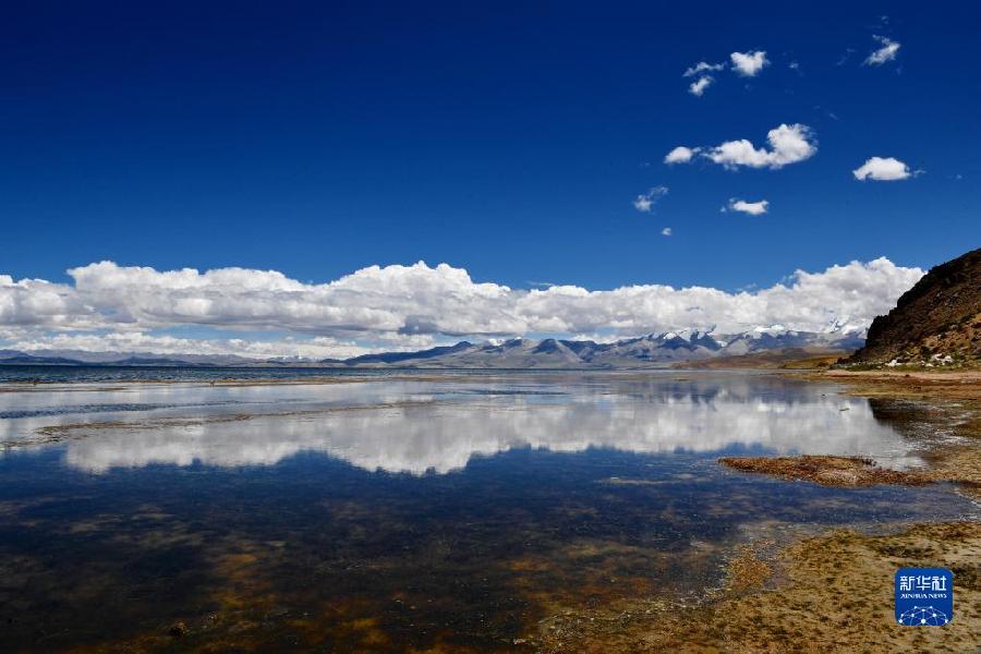 蓝天白云下的玛旁雍错(8月2日摄)。