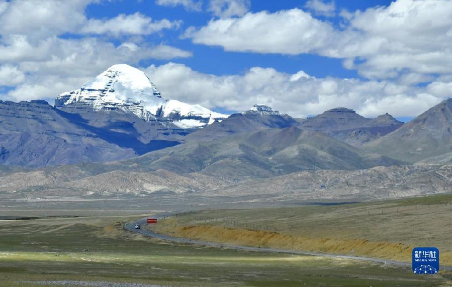 通往冈仁波齐峰景区的公路(8月2日摄)。