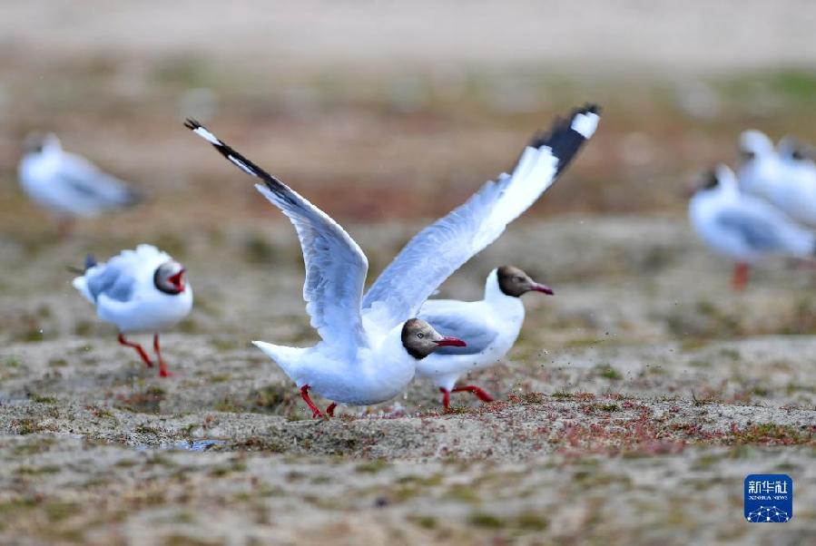 玛旁雍错湖边的棕头鸥(8月2日摄)。