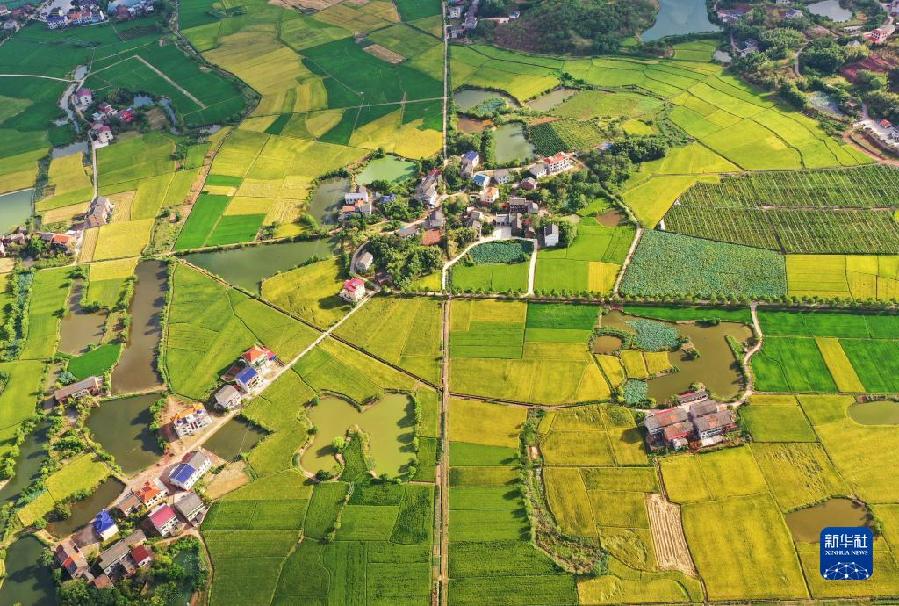 初秋时节,乡村田野色彩缤纷,秋收的“丰”景美如画卷。