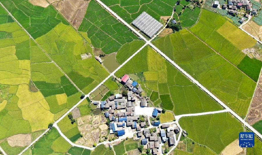 8月28日拍摄的湖南省资兴市蓼江镇田园景色(无人机照片)。