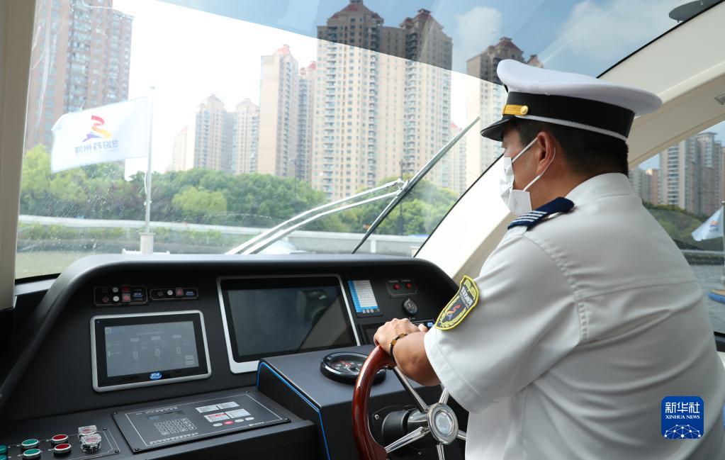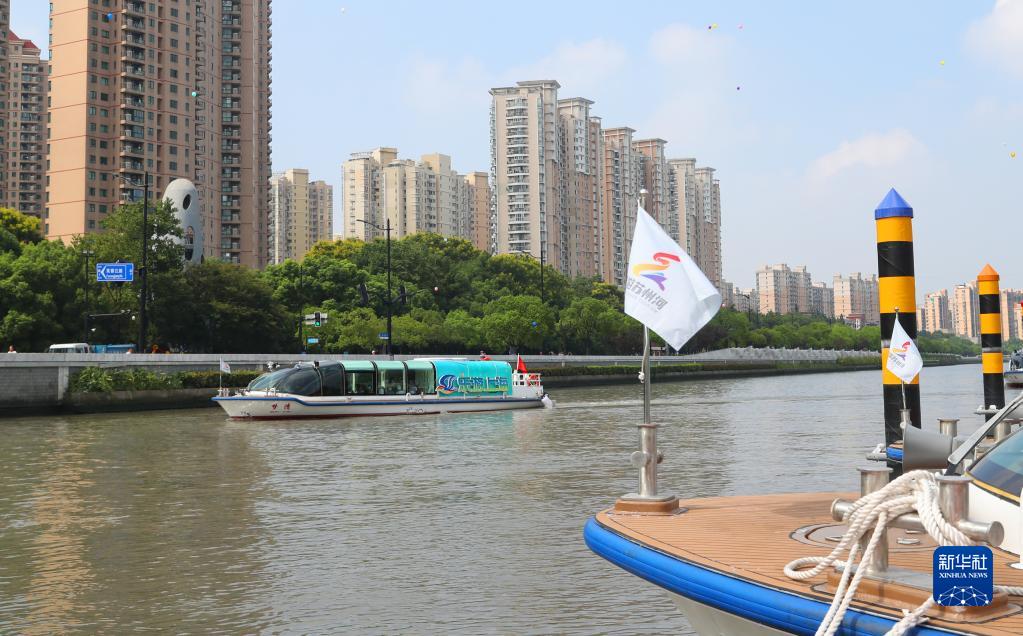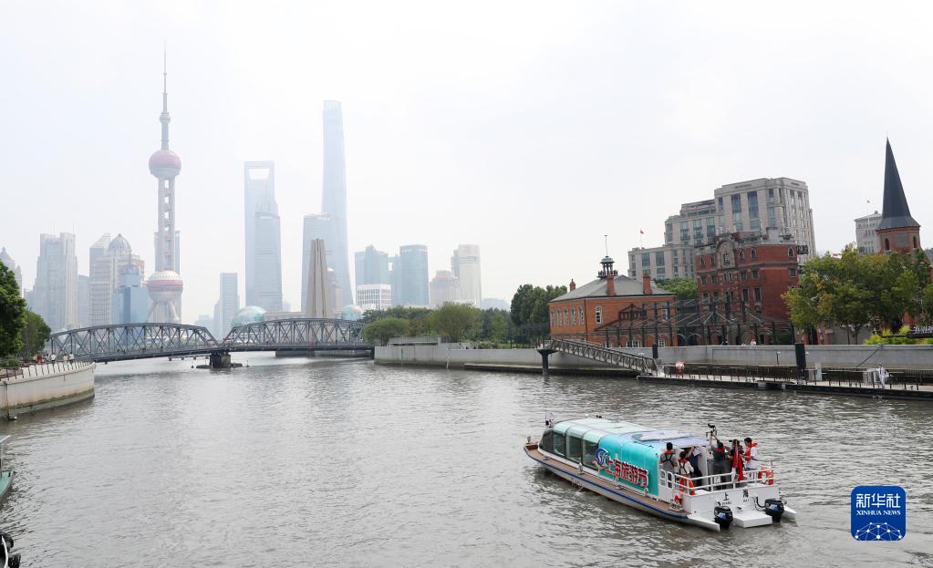 当日,三艘“时空之梭”电动旅游观光船从位于苏州河畔的上海长风公园码头启航,开启苏州河旅游水上航线试运营。