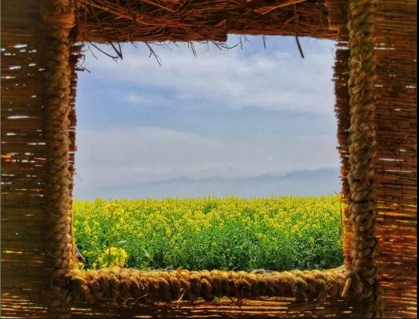 这张照片利用草屋,窗户作为前景,突出表现主体油菜花,画面构图让人身临其境,耳目一新。