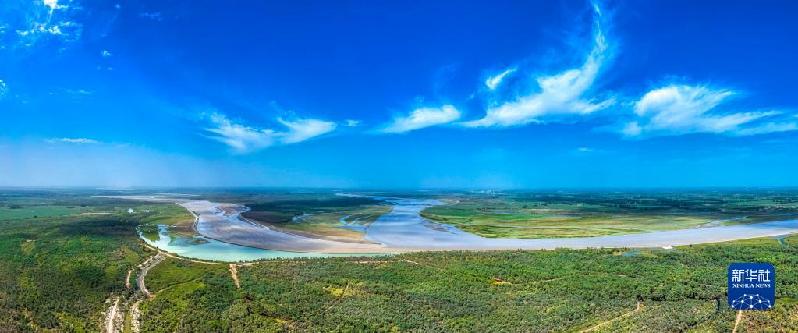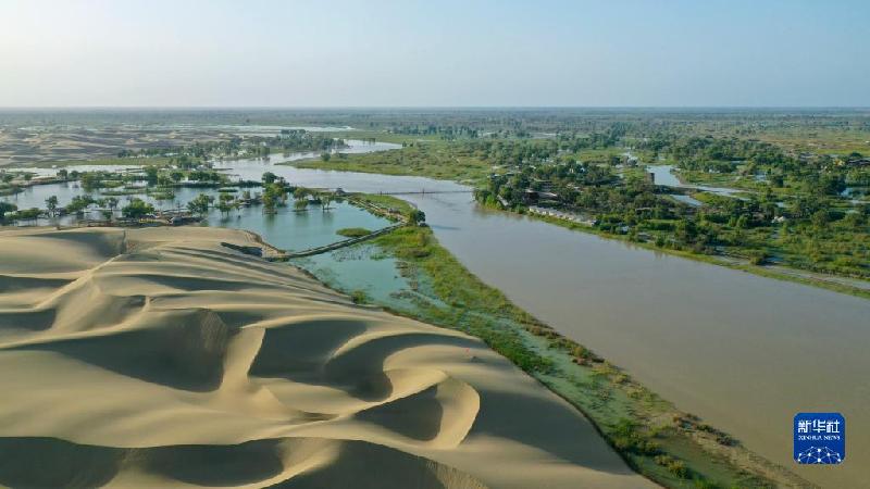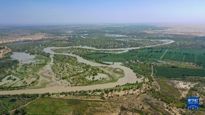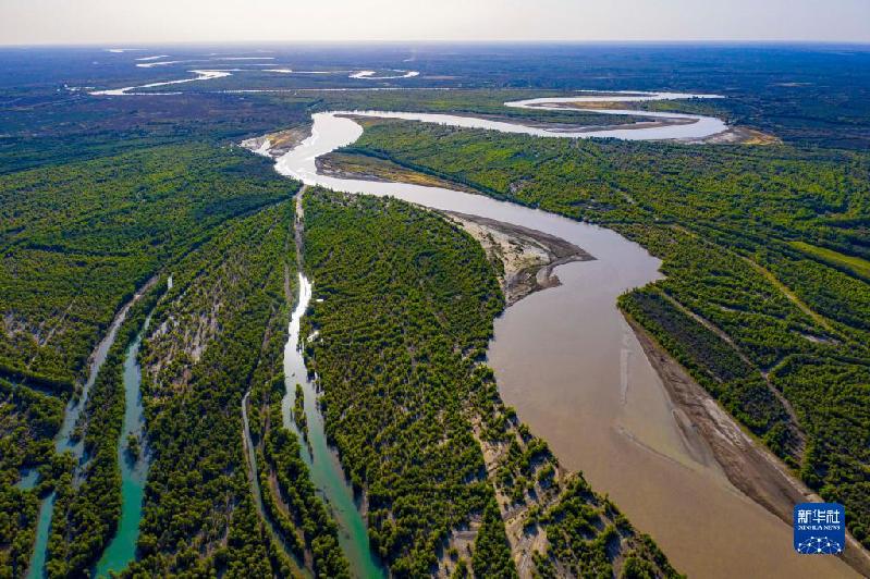 塔里木河流经新疆阿拉尔市(2022年8月2日摄,无人机照片)。
