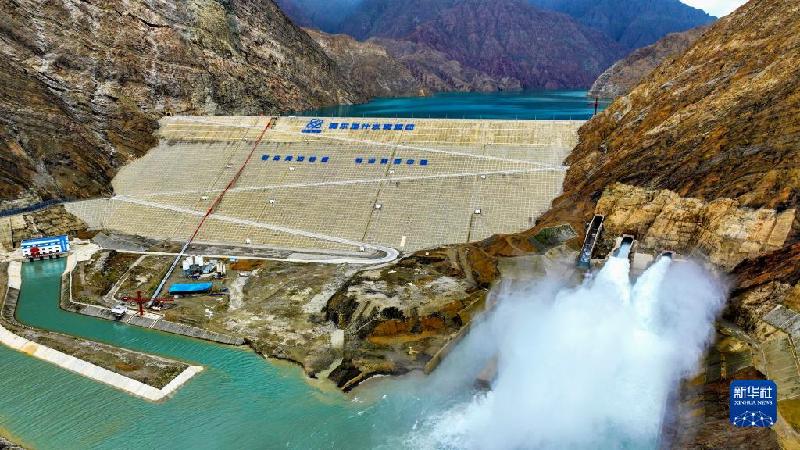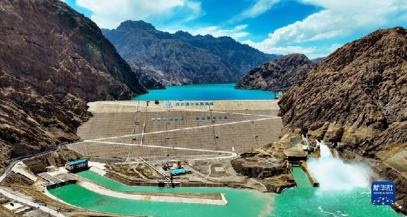 这是2022年8月4日拍摄的阿尔塔什水利枢纽(无人机照片)。阿尔塔什水利枢纽工程位于新疆莎车县和阿克陶县交界处,地处喀喇昆仑山河谷,是叶尔羌河控制性水利枢纽工程。