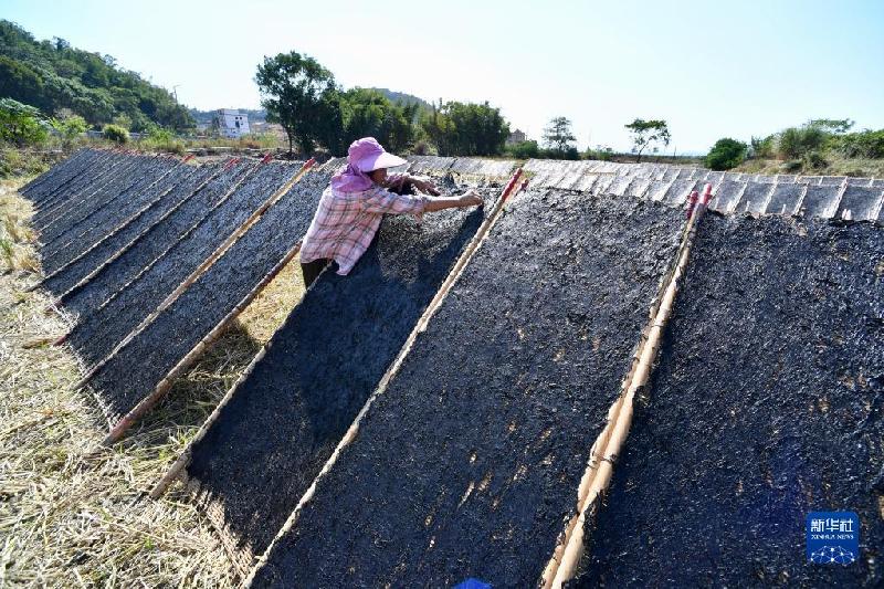 10月21日,福建省霞浦县三沙镇渔民在晾晒紫菜。