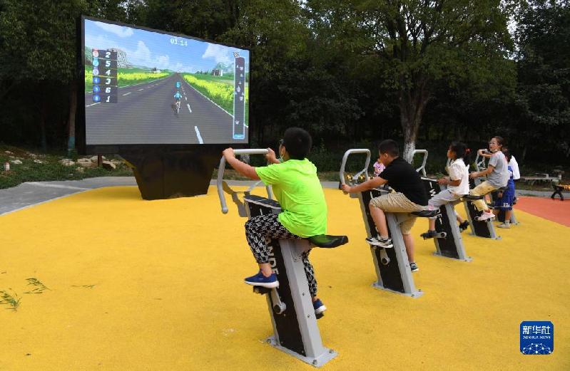 2022年9月4日,小朋友在合肥经济技术开发区南艳湖公园健身。