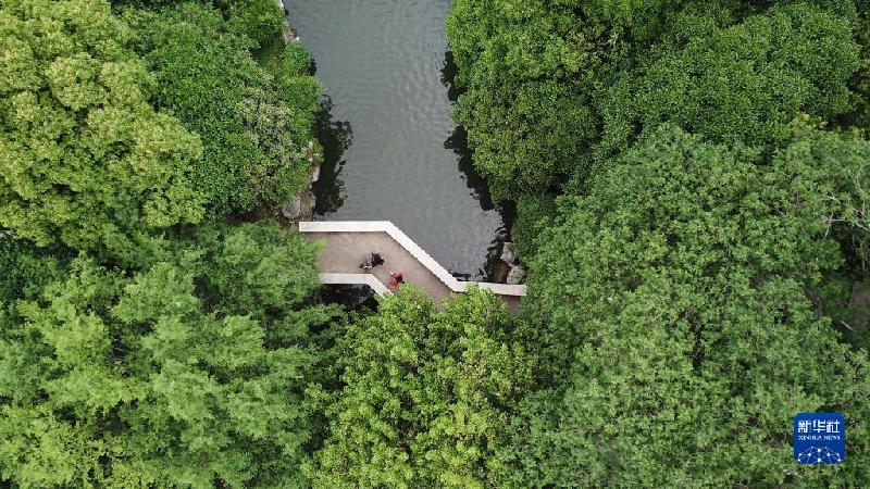 2021年5月5日,市民在合肥市环城公园散步(无人机照片)。