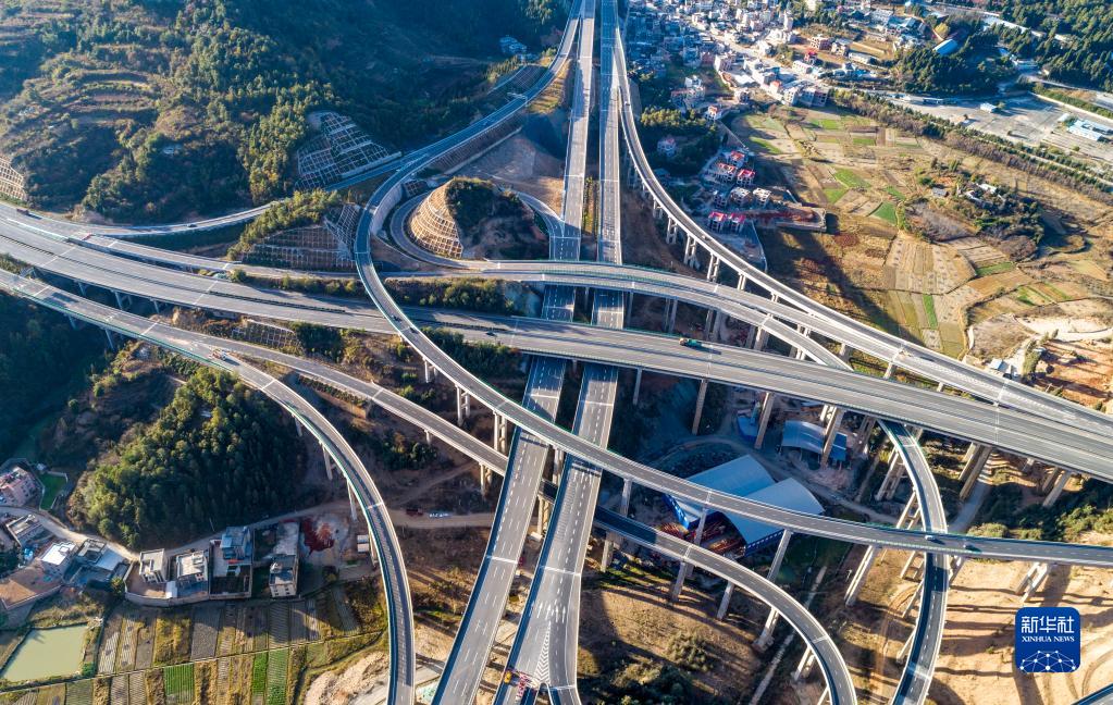 这是12月8日拍摄的新昆楚高速昆明西北绕城枢纽立交(无人机照片)。新华社记者 陈欣波 摄