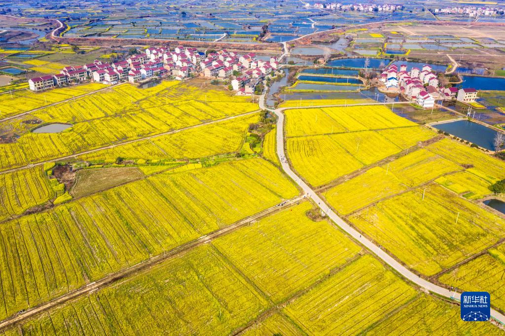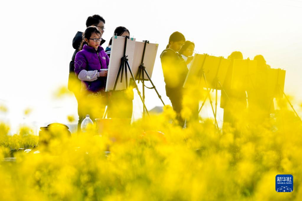 随着天气回暖,江西省樟树市永泰镇官湖村的油菜花竞相绽放,金黄色花海染尽乡野,吸引了众多游人和学生等前来观赏、写生,感受春日之美。