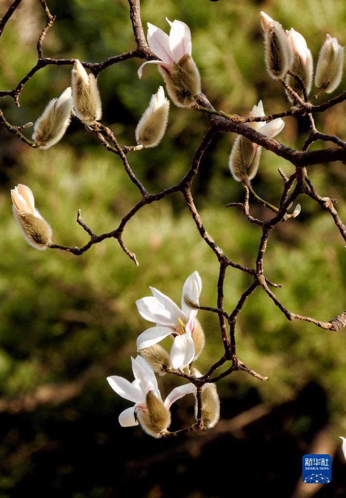 近期,随着气温逐渐升高,位于北京的国家植物园内玉兰花开始绽放,吸引市民前来赏花踏春。