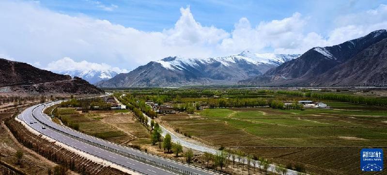 拉萨市达孜区塔杰乡的田野,拉萨至林芝高速公路穿行其中(手机照片,4月30日摄)。