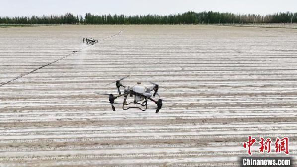 中新网新疆阿拉尔5月10日电 (杜新民 冯斌石继良)进入5月,新疆生产建设兵团第一师阿拉尔市的210万亩棉田陆续进入田管期。在纵横阡陌的广袤棉田,无人机的加入,让棉田化调作业更高效、更精准,棉田管理也变得更加轻松。
