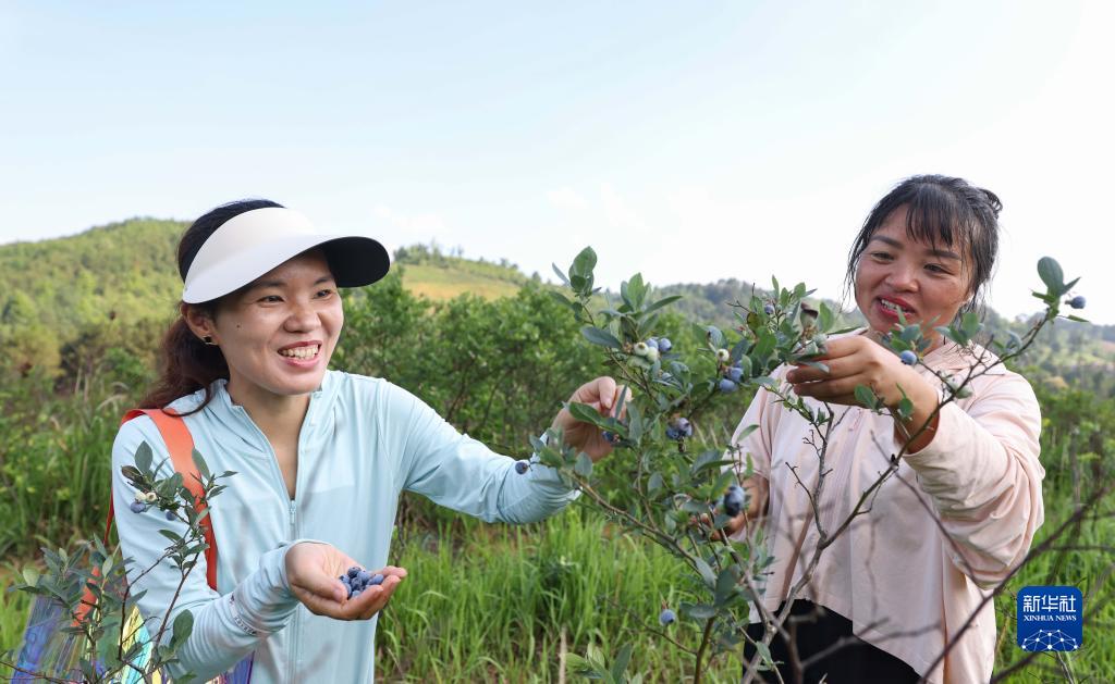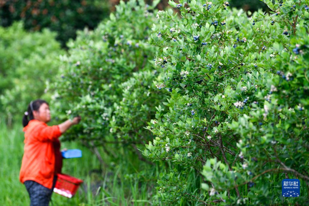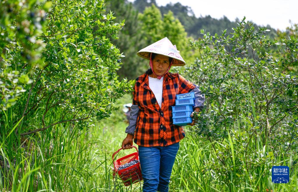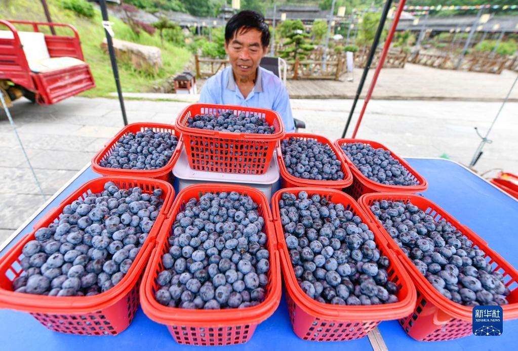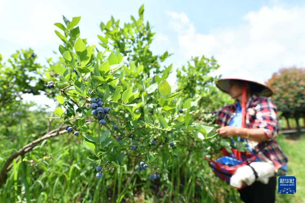 6月4日,村民在贵州省麻江县蓝梦谷生态蓝莓园采摘蓝莓。