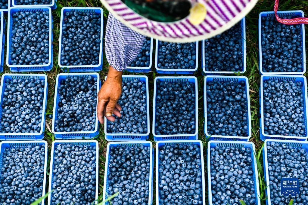 近日,贵州省黔东南苗族侗族自治州麻江县8.5万余亩蓝莓进入采摘期,果农和企业忙着采摘蓝莓鲜果和加工蓝莓产品,供应市场。麻江县1999年开始栽培蓝莓,蓝莓已成为麻江“一县一业”主导产业和国家地理标志?;げ?。