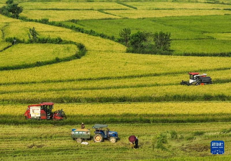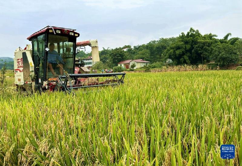 连日来,湖南、湖北、四川等地种植的水稻进入成熟收获季,农民操作农机在田野里忙碌,感受丰收的喜悦。