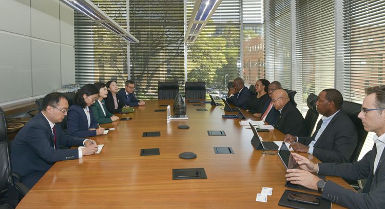 中国新闻代表团与标准银行集团CEO西姆·沙巴拉拉等高管座谈。
