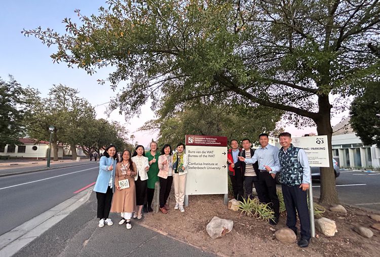 中国新闻代表团与斯坦陵布什大学孔子学院师生合影。