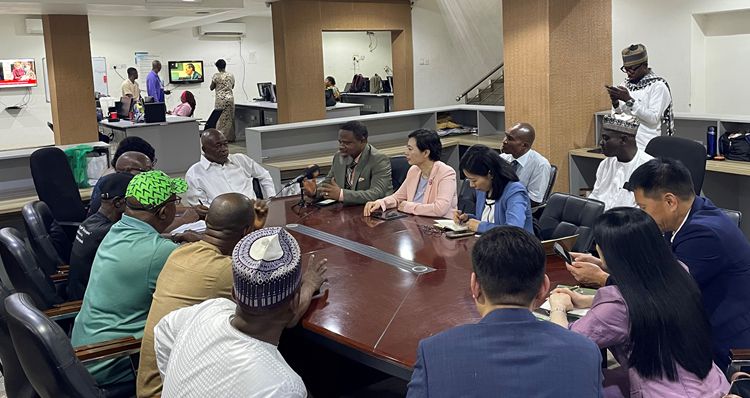 中国新闻代表团与尼日利亚非洲独立电视台同行座谈。张业亮摄