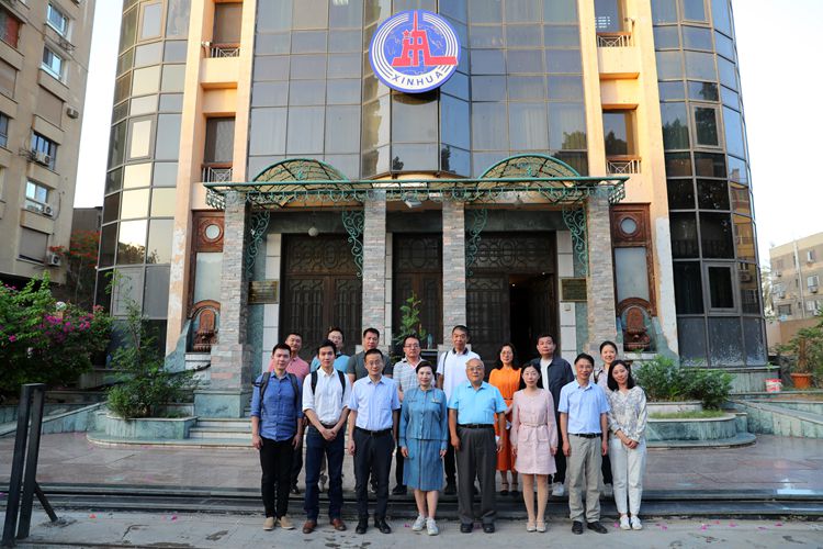 中国新闻代表团与中国媒体驻开罗记者合影。
