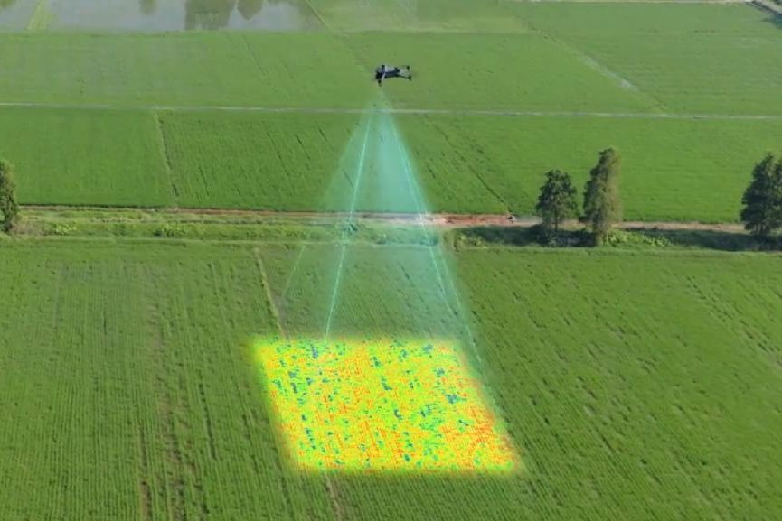 多光谱相机,能“看”到更广泛的光谱范围,除了可见光,还能识别到红外光和紫外光,进而可以感知到许多肉眼看不到的信息。多光谱相机+无人机,可以快速扫描大片农田,感知到氮素含量、叶绿素含量及相关部位水分含量等重要信息、进而分析出长势,这常被形容为“给农田做CT”。国家农业智能装备工程技术研究中心航空应用技术部主任张瑞瑞说,多光谱相机对植物光合作用、表面温度分布、地表土壤湿度等都有能有更好的监测效果。多光谱也是实时监测病虫害的一种有效手段,与其它手段结合可以好地掌握病虫害的分布情况。