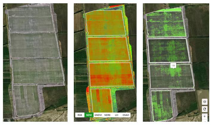 这些科学数据,可以支撑农事精准决策,特别是在遇到灾害时。今年年初一些地区遭遇雨雪冰冻天气,湖北荆门等地就马上出动了多光谱无人机,捕捉到了作物的长势差异、判断健康状况,生成的农业“处方图”有效指导农业无人机精准变量施肥,进行更加精准的“救治”。