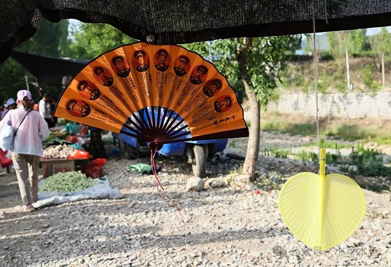 2024年6月11日,山东省淄博市峨庄大集上出售的十大元帅纸扇