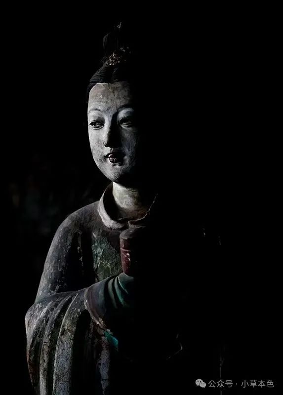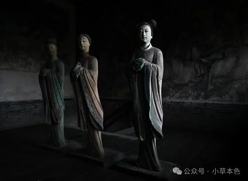 2024年3月26日,身着古代服饰的晋祠博物馆工作人员被晋祠圣母殿里的古代侍女彩塑像深深吸引