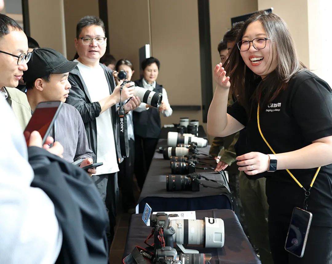 佳能公司代表为学员们提供专业影像设备技术咨询和设备借用体验服务??破帐北敬汉?摄