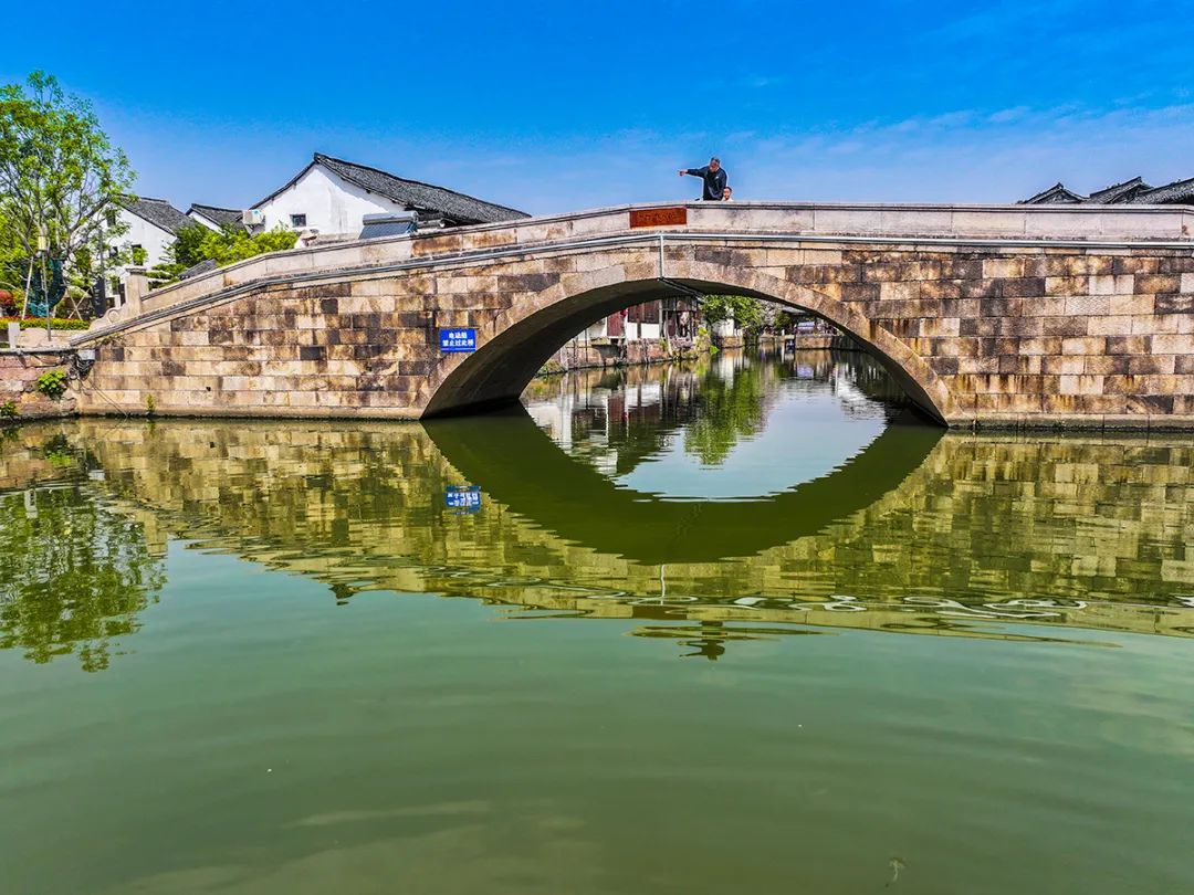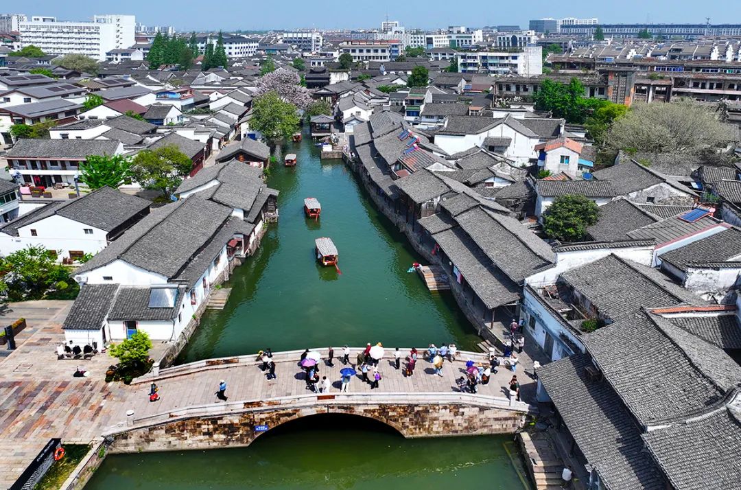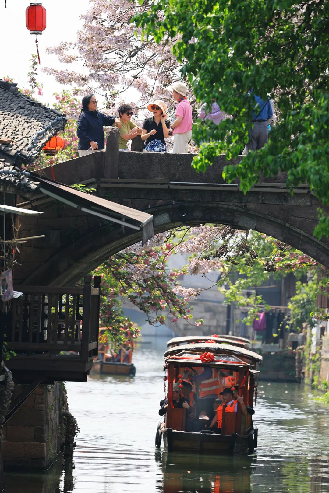 2025年4月10日,游客们在德清县新市古镇太平桥、状元桥等景点,步行、乘坐游船观光老街。 盱眙县融媒体中心 许昌银摄