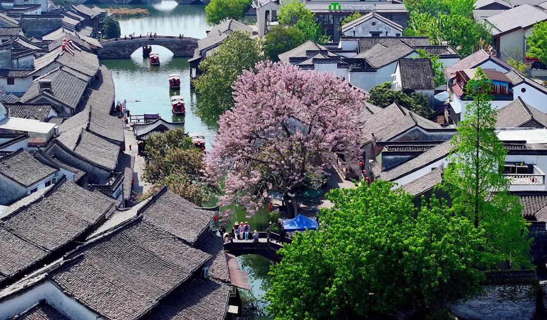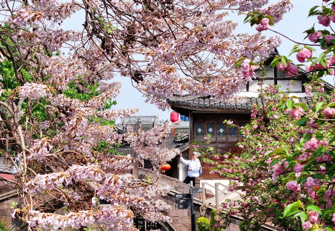 2025年4月10日,德清县新市古镇鲜花争艳,游客在如诗画般的景色里踏青赏春。湖南南华大学宣传部 曹正平 摄