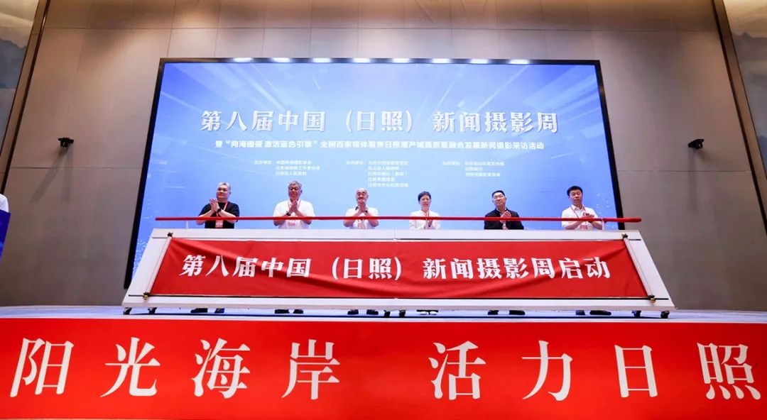 图为领导嘉宾共同启幕第八届中国(日照)新闻摄影周开幕活动。
