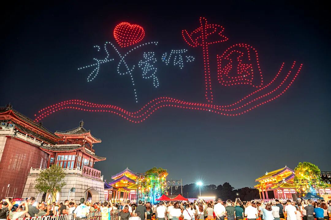 2025年9月30日,广东中山,“红博城·隆都之夜”无人机在空中打出“我爱你中国”字样。中山日报见习记者张景天 摄