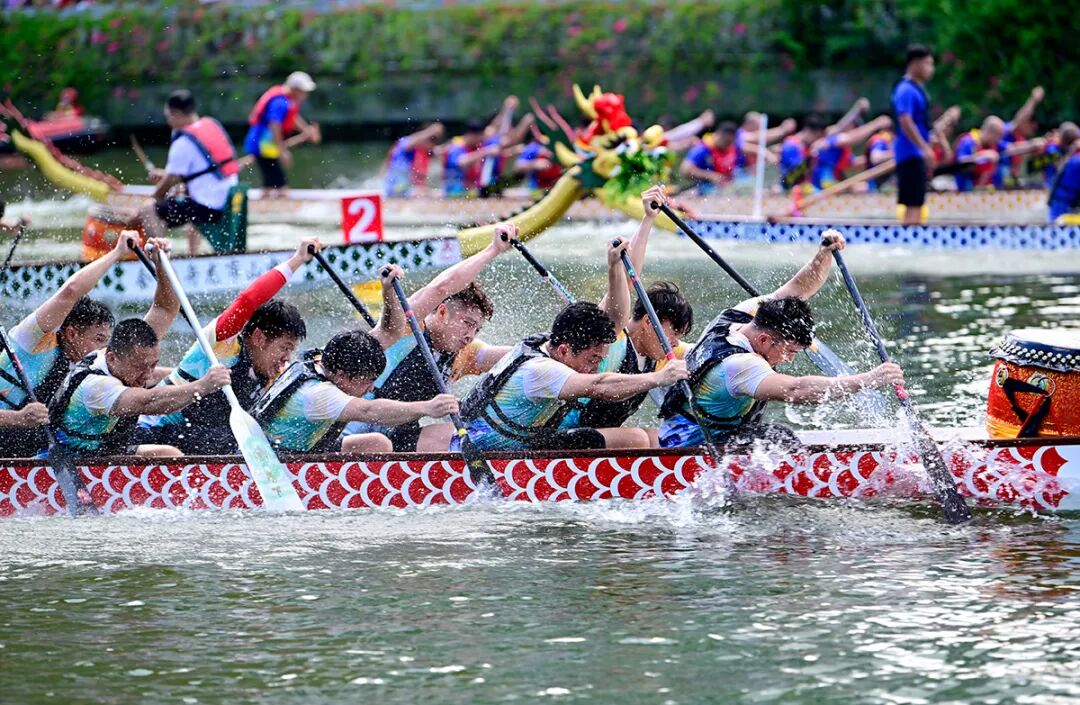 文旅盛宴百花齐放,传统与现代交相辉映。在广西融安,来自广东、湖南、四川、江西、福建、广西,以及香港特别行政区共225支龙舟劲旅、4000余名各族运动员挥桨竞技“广西龙超——2025年融安龙舟公开赛”。参赛选手们用飞溅的浪花与齐鸣的号子,续写百年龙舟的奋进故事,为现场观众带来一场融合体育、文化与民俗的盛宴。