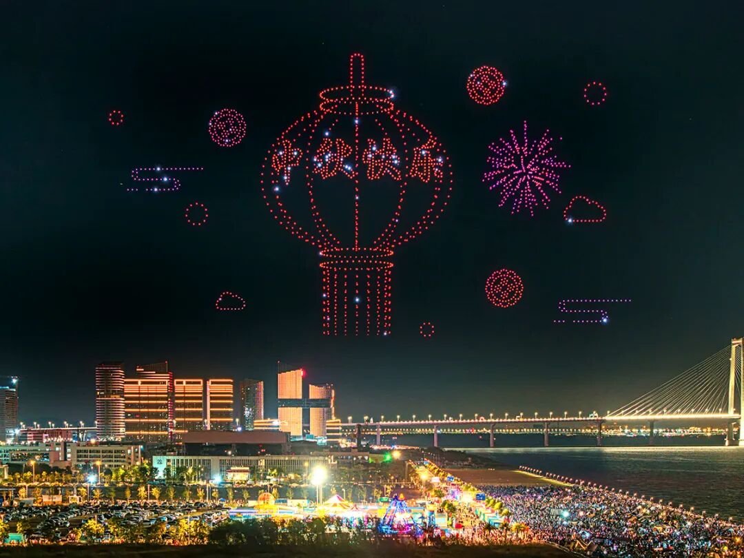 2025年10月6日,广东中山,2000架无人机在“深中通道”上空进行无人机表演。中山日报见习记者 张景天摄