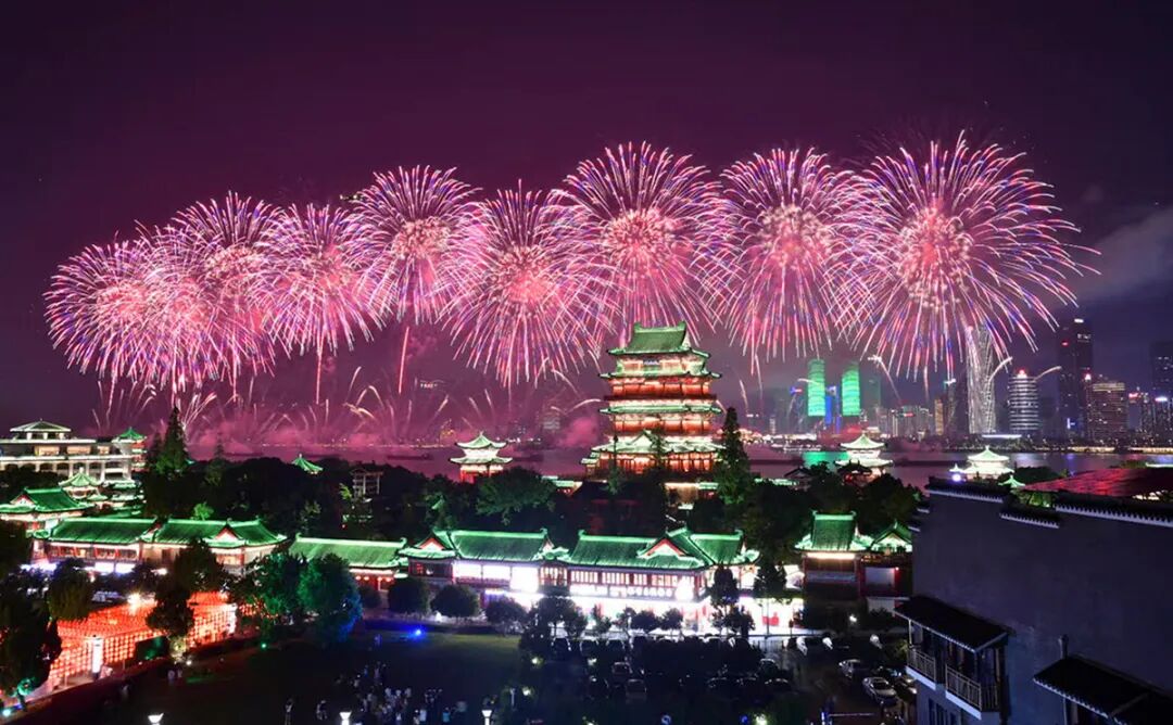 夜幕下的南昌更是璀璨。赣江一江两岸上演“盛世华彩豫章欢歌”烟花晚会,结合无人机表演与灯光秀,303双子塔楼顶的烟花点位更添震撼,线上直播峰值观看人数超百万,现场欢呼声此起彼伏。万寿宫街区里,六地民族歌舞巡游、非遗展演热闹非凡,红辣椒墙成为网红打卡点。从书香雅韵到红色传承,从璀璨烟火到市井狂欢,南昌的国庆假期尽显英雄城的厚重与活力。
