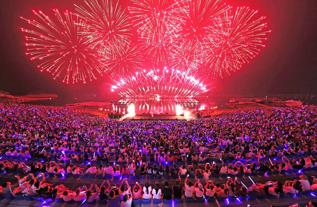 2025年10月2日,重庆市长寿湖景区,璀璨夺目的烟花,酷炫华丽的灯光,为10000余名市民和游客带来了一场视觉盛宴。重庆市新闻摄影学会 李辉 摄