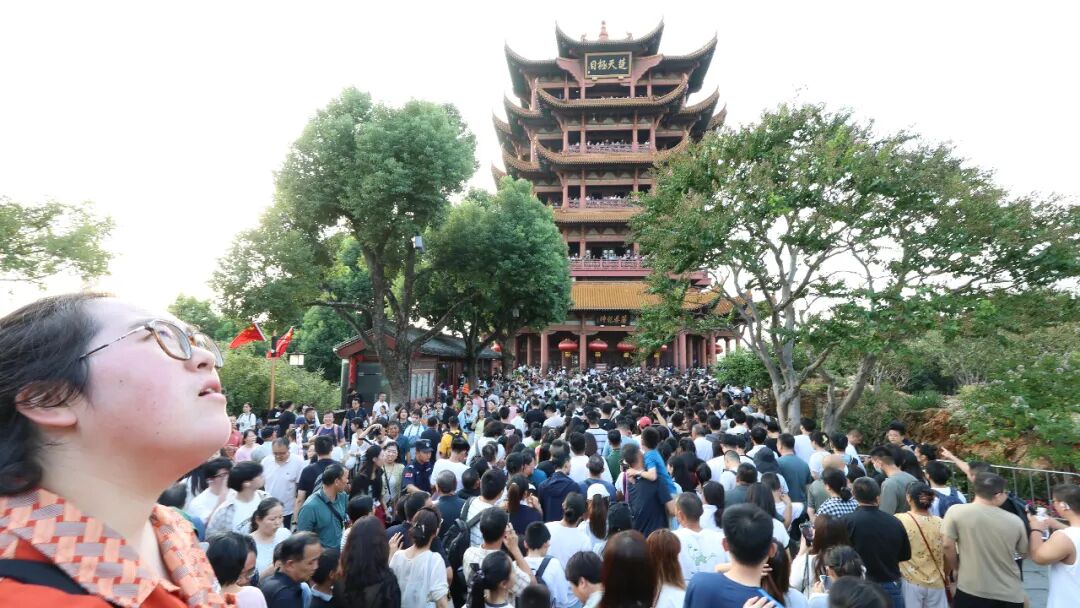 2025年10月3日,湖北武汉,黄鹤楼景区人流如潮。科普时报记者 季春红 摄