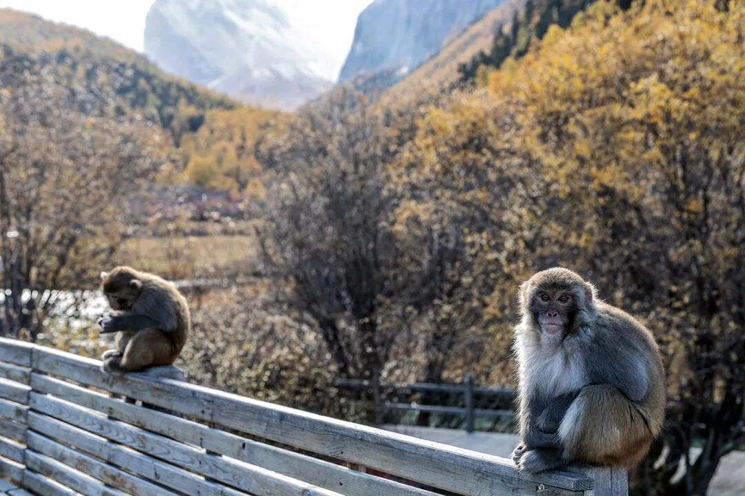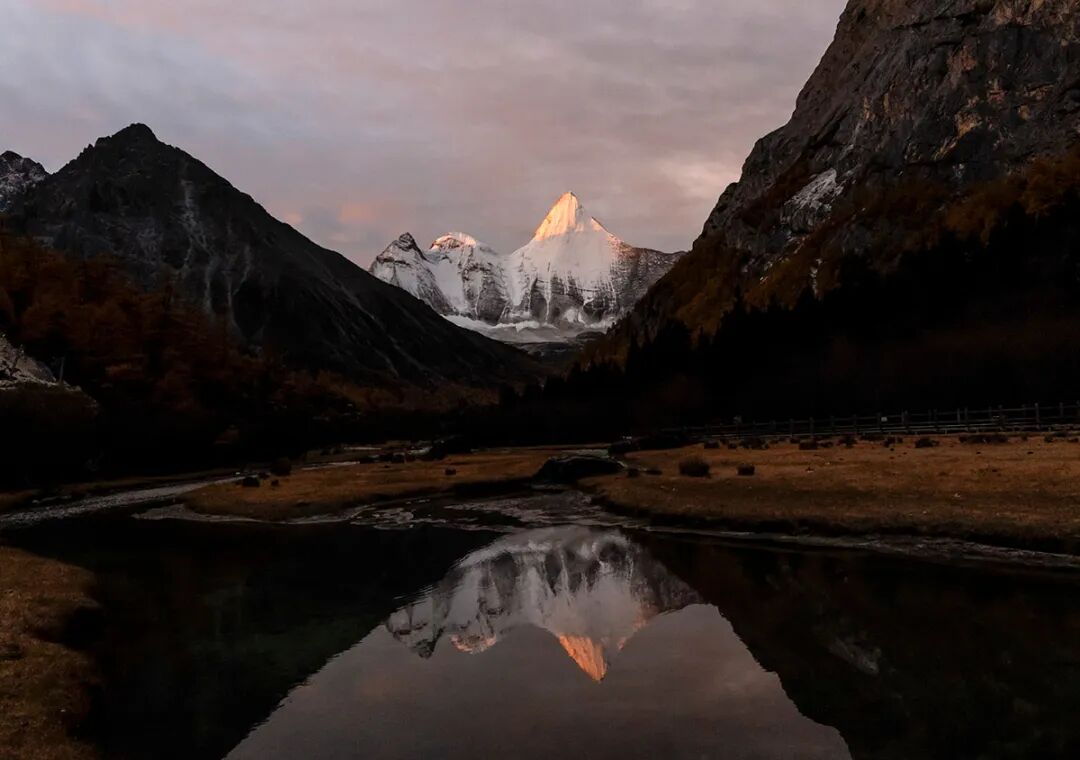 稻城亚丁景区秋景,远处是央迈勇雪山