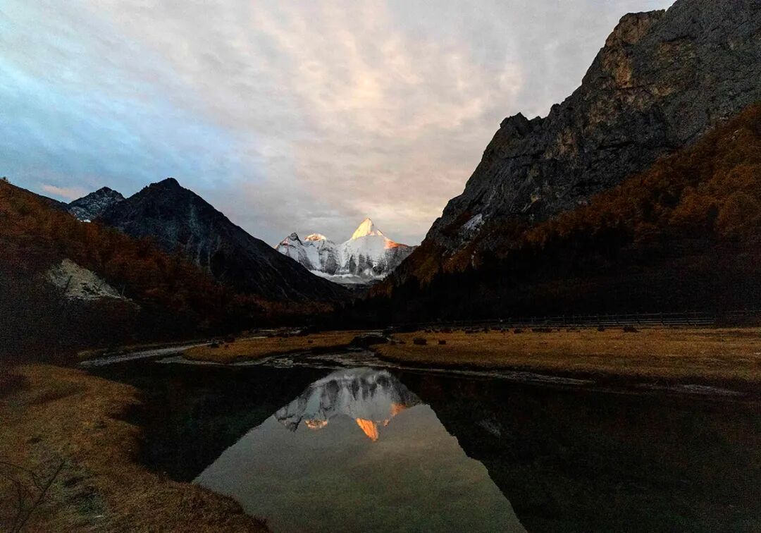 位于四川甘孜藏族自治州南部的稻城亚丁风景区,主要由“仙乃日、央迈勇、夏诺多吉”三座雪山和周围的河流、湖泊和高山草甸组成,具有我国横断山区最独特的雪山景观和与之相适应的森林生态系统、高山湖泊、冰川宽谷、高原曲流、峡谷、草甸等,以雄、奇、秀、美的自然风光而闻名中外,被誉为“蓝色星球上的一片净土”“中国香格里拉之魂”。稻城亚丁风景区是国家5A级景区,这里属亚丁国家级自然?;で?,2003年7月被联合国教科文组织列为“世界人与生物圈?;ね绯稍薄?。深秋时节,稻城亚丁景区进入一年中最佳观赏季节。