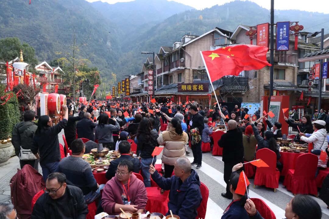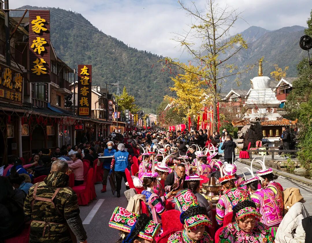 11月19日,汶川县映秀镇举办长桌坝坝宴。
