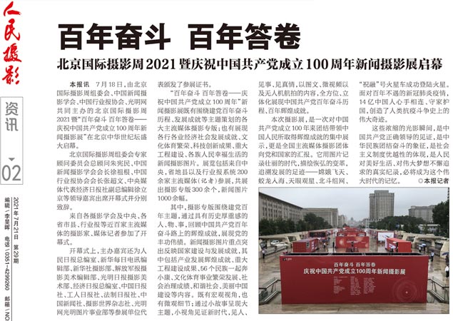 7月18日,由中国记协指导,中国新闻摄影学会、中国行业报协会、光明网和北京国际摄影周2021组委会共同主办的“百年奋斗 百年答卷-庆祝建党成立100周年”新闻摄影展在中华世纪坛盛大启幕。来自中央和全国性行业报、各省地市县主流媒体、各摄影组织以及参展作者代表参加了开幕式。【详细】