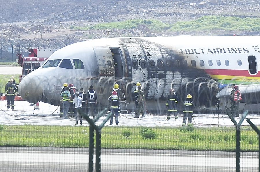 西藏航空一客机起飞时偏出跑道起火